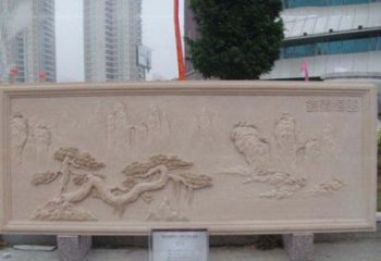 酒店裝飾藝術迎客松雕塑結合大理石創意浮雕
