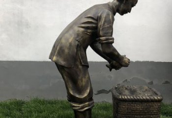 仿銅玻璃鋼漁民人物雕塑戶外公園民俗文化裝飾擺件