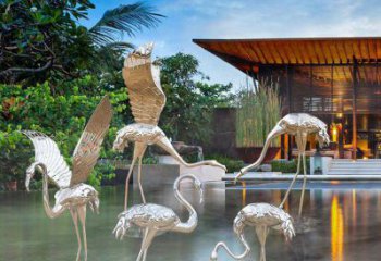 不銹鋼火烈鳥雕塑,游樂園擺放鏡面裝點