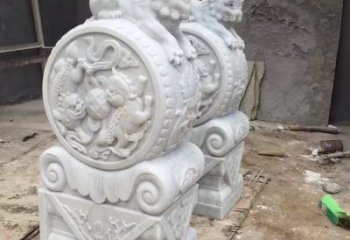 精美大理石石雕抱鼓雕塑,裝點別墅庭院門口