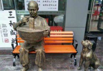 玻璃鋼雕塑,喚醒門口老人吃面的美好回憶