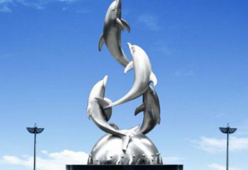 城市廣場不銹鋼海豚雕塑擺件,鏡面制作精美