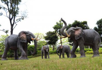 不銹鋼仿銅大象雕塑,為戶外草坪增添一家四口的溫馨氛圍