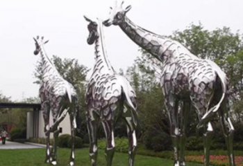不銹鋼大型長頸鹿雕塑,為園林草地?cái)[放