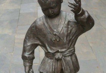 步行街小男孩銅雕景觀打陀螺裝飾