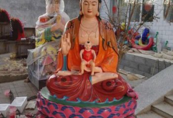 景點寺廟玻璃鋼彩繪送子觀音雕塑