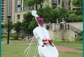 廣場大型不銹鋼鏤空大提琴景觀雕塑