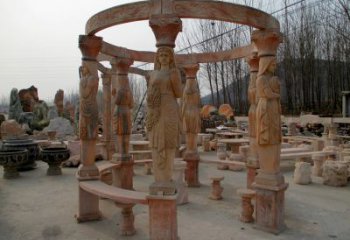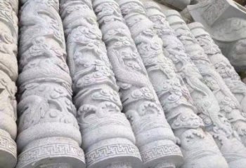 欄桿轉角立望柱或尋杖絞口造者,均可見浮雕門口石柱雕塑。浮雕盤子石柱雕塑比較纖細,而石欄桿逐漸脫離木制欄桿的形制,趨向厚重。清末以后,西方古典比例、尺度和裝飾的欄桿形式進入中國。從形式上看,欄桿可分為節間式與連續式兩種。盤子寺院石柱雕塑由立柱,扶手及橫擋組成,扶手支撐于立柱上。