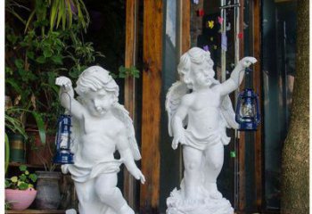 玻璃鋼仿銅西方天使舉燈裝飾擺件