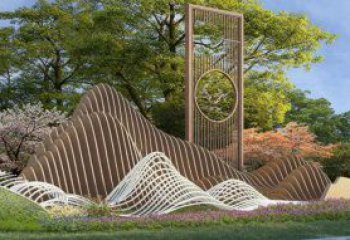 該雕塑是一件創意十足的景觀雕塑,耐候鋼與不銹鋼的搭配運用是其設計的核心亮點。設計理念上,它旨在將詩歌意境、酒文化與山水元素相融合,打造出富有文化底蘊與藝術感染力的景觀。雕塑的內容設計緊扣 “詩酒文化” 主題。“兩岸猿聲啼不住,輕舟已過萬重山” 的詩句被巧妙融入,配合山水造型,營造出詩句中那種輕舟穿行于山水間的靈動意境。酒壇等元素的加入,則直接點明了酒文化,將詩歌與酒文化有機結合,讓觀者能從中感受到詩酒相融的獨特文化氛圍。作為景觀雕塑,它與周圍的自然環境相得益彰。周圍的綠植花卉為雕塑提供了自然的背景,使得耐候鋼與不銹鋼塑造的詩酒山水場景,仿佛是從自然中生長出來一般,既展現了現代雕塑藝術中材質運用的巧思,又傳遞出對傳統文化的致敬與傳承,成為一處能讓人們在欣賞景觀的同時,感受文化魅力的獨特存在。<br />