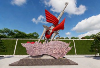 這座雕塑以紅色旗幟與革命浮雕為核心元素,采用不銹鋼等金屬材質打造,是一座兼具藝術性與精神性的景觀雕塑。它通過硬朗的旗桿、動感的紅旗與細膩的基座浮雕,凝練了革命先輩的奮斗歷程與新時代的奮進精神,既以現代金屬雕塑的質感彰顯視覺沖擊力,又以紅色主題的深刻內涵成為傳承信仰的精神地標。